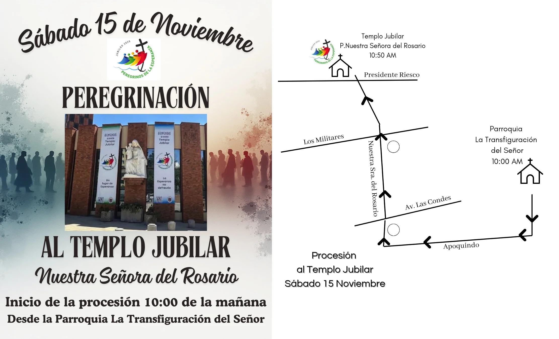 La procesión se realizará el sábado 15 de noviembre. Nos juntaremos a las 10:00 hrs en la salida de nuestra parroquia.