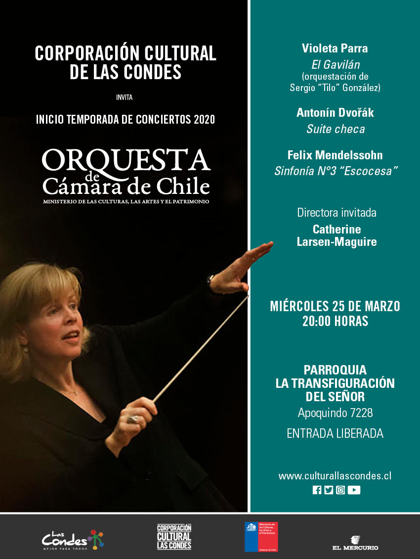 Invitamos a nuestra comunidad a participar de nuevo concierto de la Orquesta de Cámara de Chile que se realizará en nuestra parroquia el día miércoles 25 de marzo a las 20:00 hrs (entrada liberada).
