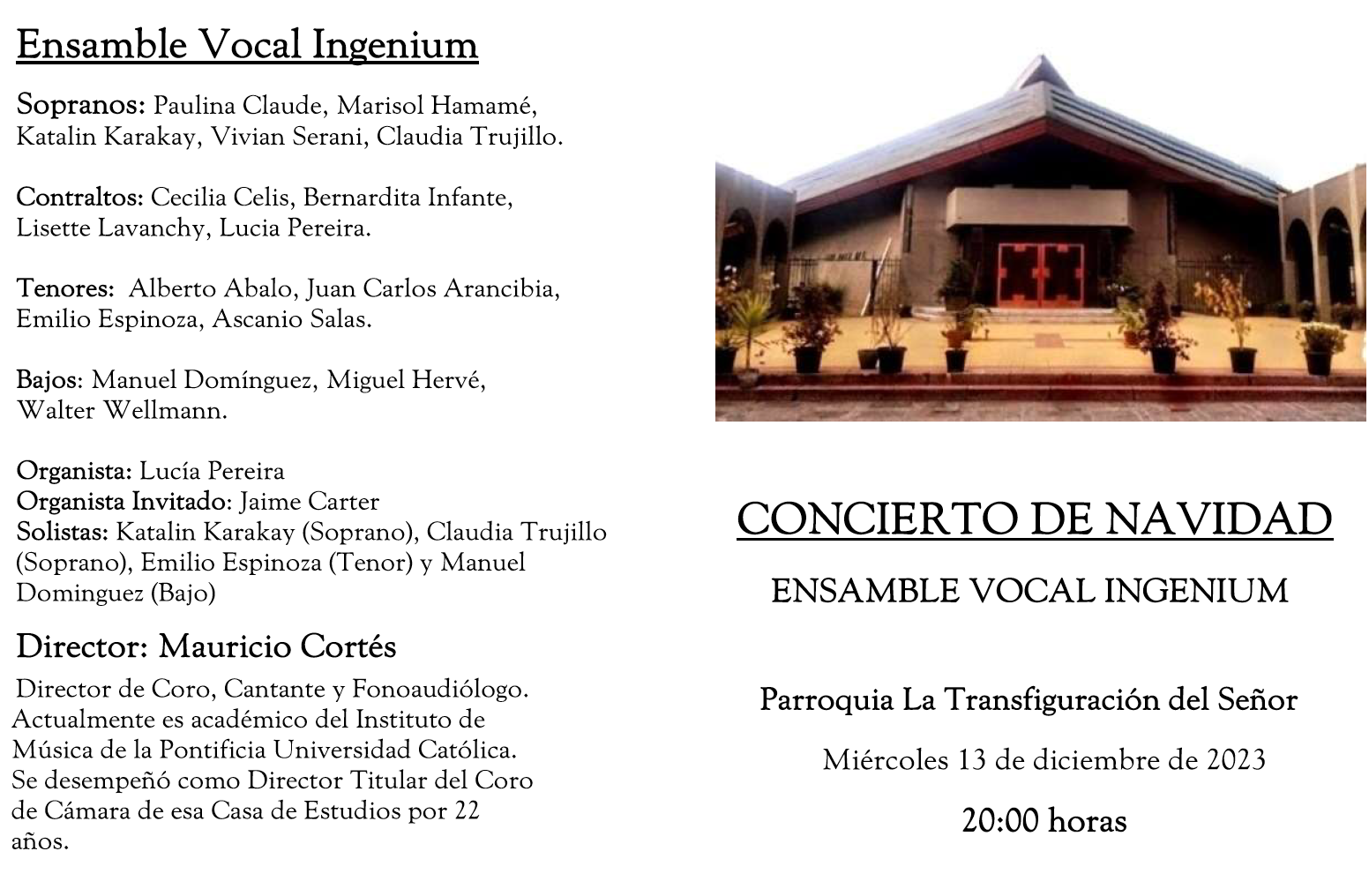Invitamos a toda nuestra comunidad a participar de un nuevo concierto de Navidad que se realizará en nuestra parroquia el miércoles 13 de diciembre a las 20:00 hrs,